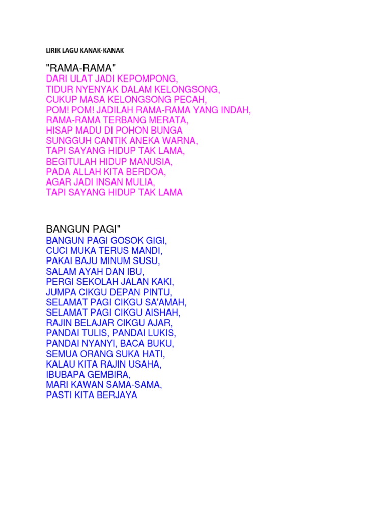 Lirik Lagu Kanak Kanak Malaysia Pdf