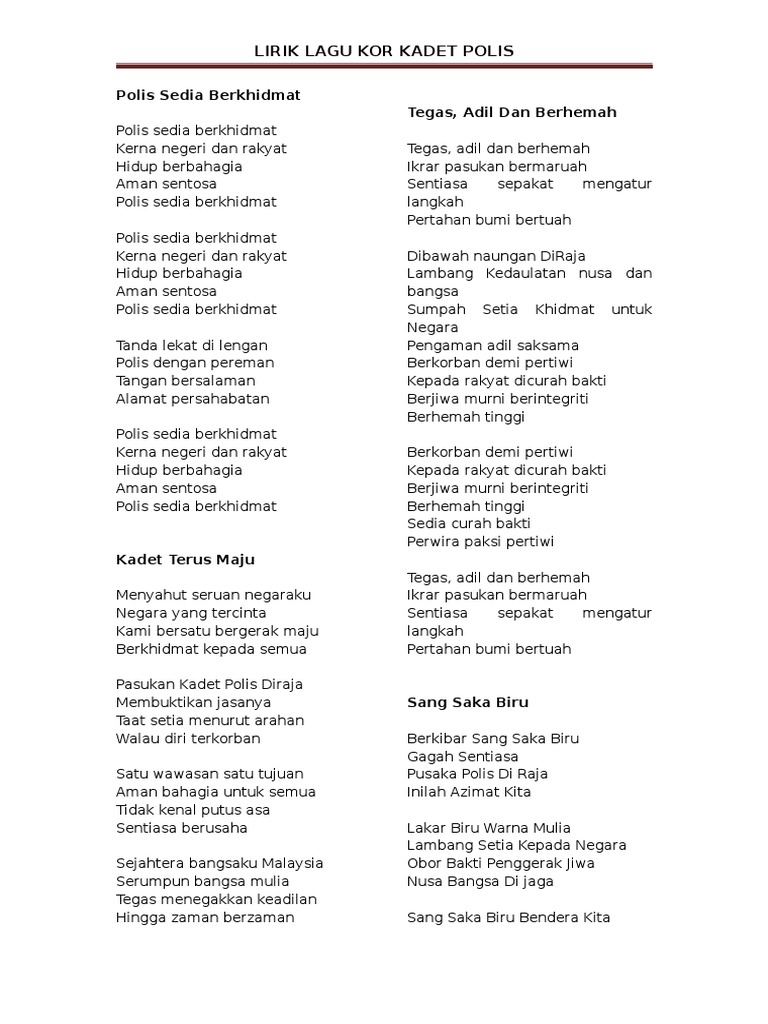 Berkibar sang saka biru gagah sentiasa pusaka polis di raja inilah azimat kita lakar biru warna mulia lambang setia kepada negara obor bakti penggerak jiwa Lirik lagu sang saka biru. Ost polis evo 2 sang saka biru lirik lagu sang saka biru lirik lagu polis evo sonaone. Official lyrics video from.